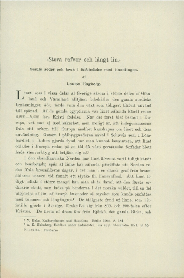 "Stora rofvor och långt lin": Gamla seder och bruk i förbindelse med linodlingen.