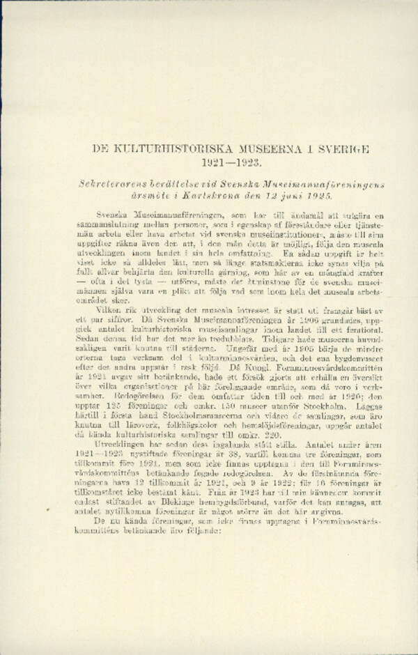 De kulturhistoriska museerna i Sverige 1921-1923