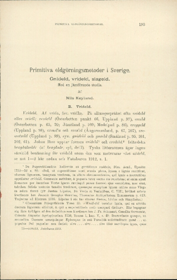 Primitiva eldgörningsmetoder i Sverige. Gnideld, vrideld, slageld.