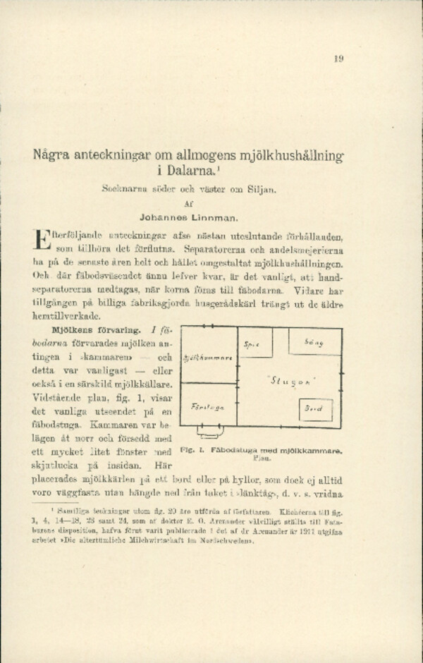 Några anteckningar om allmogens mjölkhushållning i Dalarna