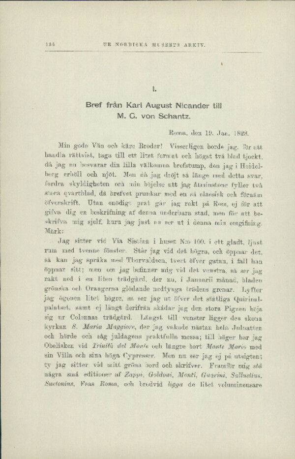 Bref från Karl August Nicander till MG von Schantz