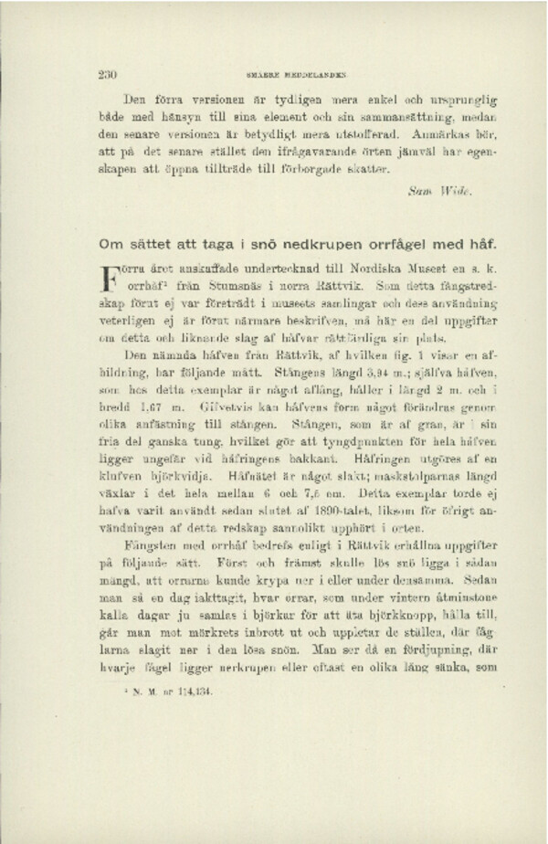Om sättet att taga i snö nedkrupen orrfågel med håf.