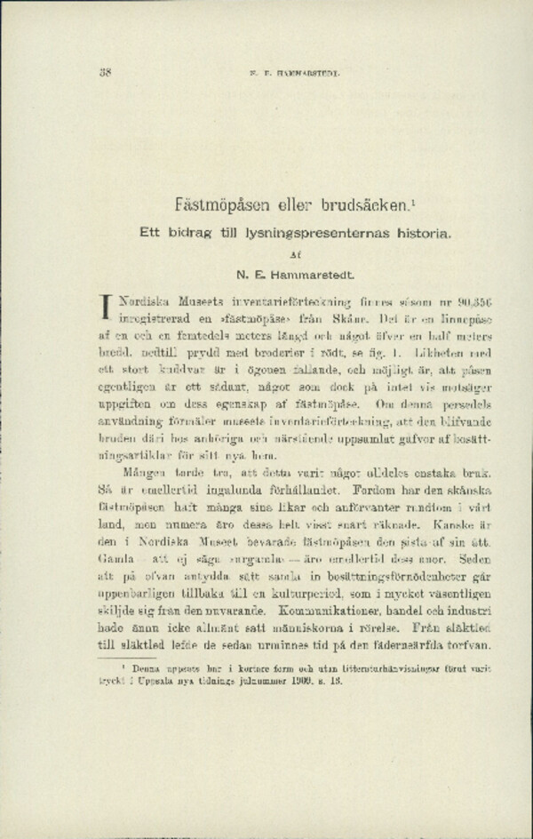 Fästmöpåsen eller brudsäcken: Ett bidrag till lysningspresenternas historia.