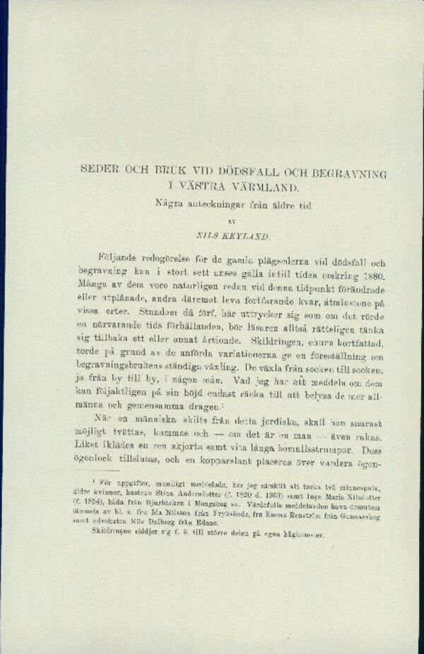 Seder och bruk vid dödsfall och begravning i Västra Värmland
