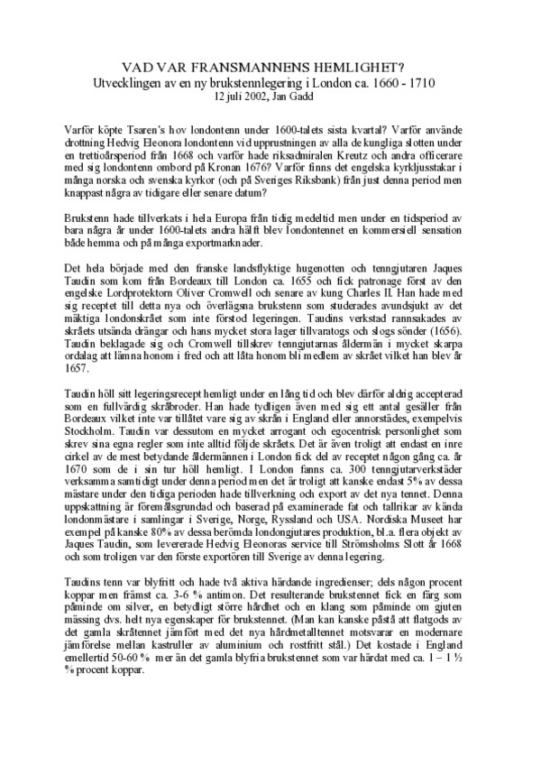 Vad var fransmännens hemlighet?: utvecklingen av en ny brukstennlegering i London ca. 1660-1710