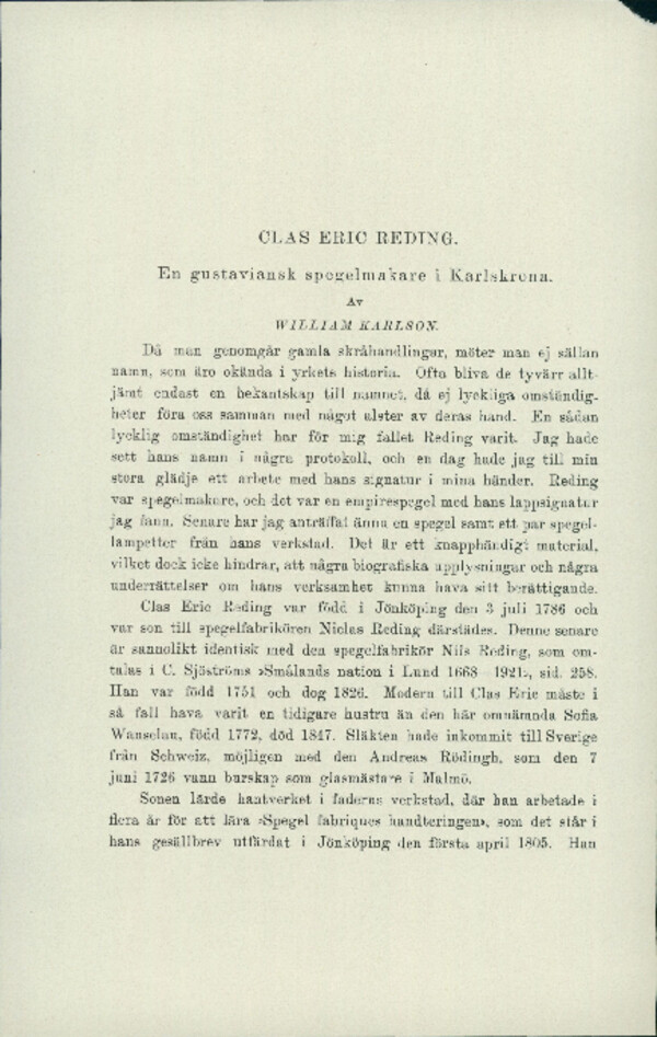 Clas Eric Reding: En gustaviansk spegelmakare i Karlskrona